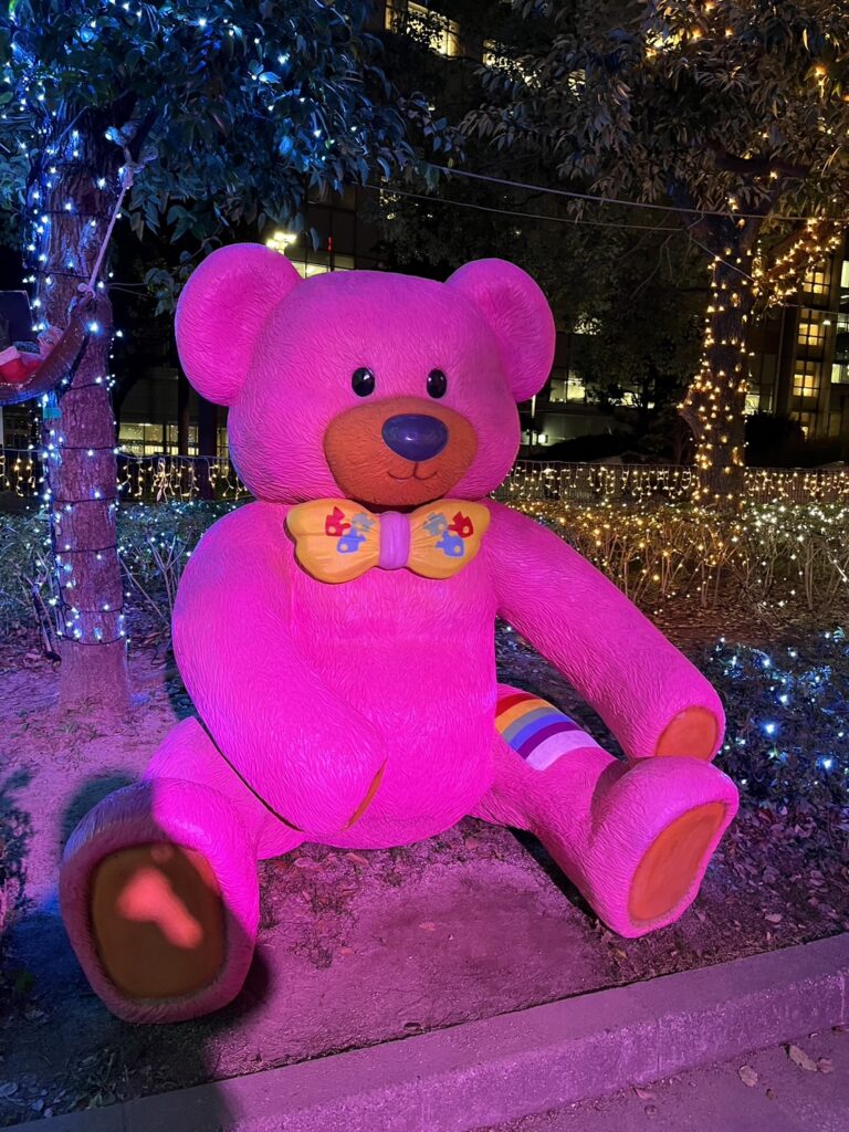 写真は、中洲~福岡市役所界隈で開催されている、クリスマスマーケットにて。こんなにかわいいのになぜか誰も写真を撮っていなかったクマさんです。なんででしょう??かわいいーー(ニコニコ)